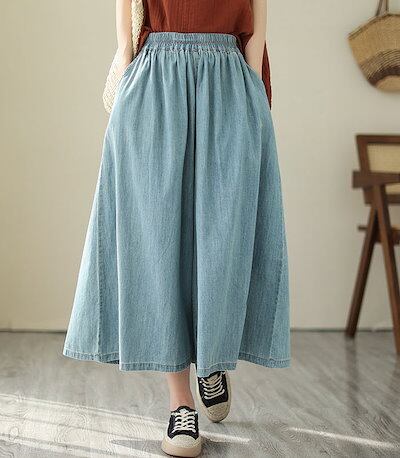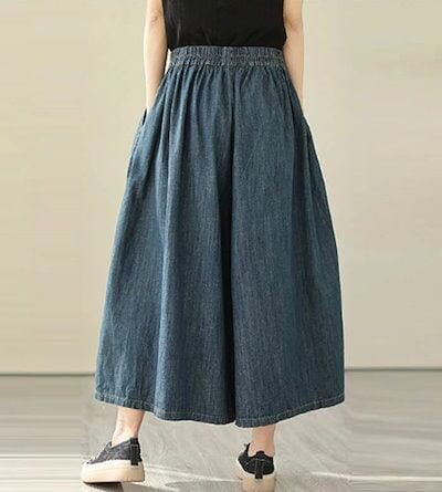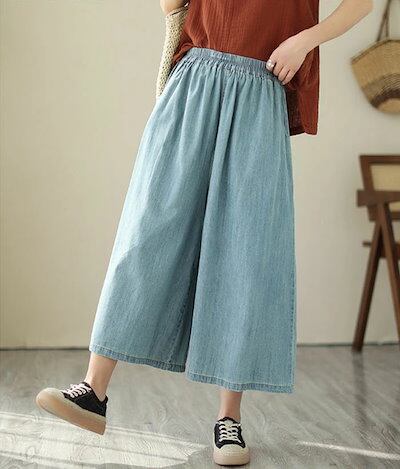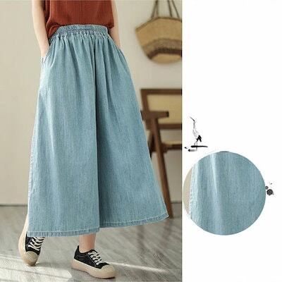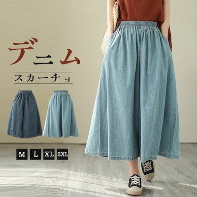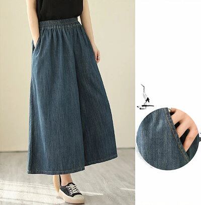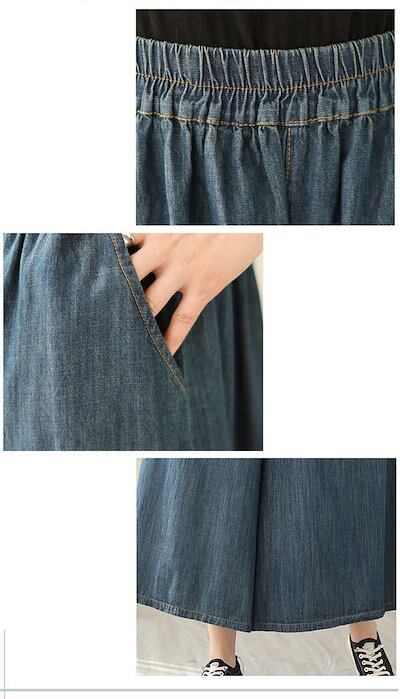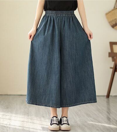 ガウチョパンツ デニム 薄め ワイドパンツ スカンツ おしゃれ ロングパンツ 春夏 春秋 無地 レディース ボトムス 体型カバー ゆったりシルエット ハイウエスト 着痩せ ロング丈 パンツ ゆったり | koookooo