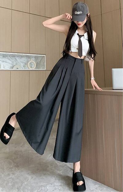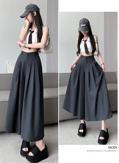 スカーチョ ガウチョパンツ ワイドパンツ スカンツ おしゃれ ロングパンツ 春夏 春秋 無地 レディース ボトムス 体型カバー ハイウエスト 着痩せ ロング丈 パンツ ゆったり 美脚 可愛い 上品 | koookooo