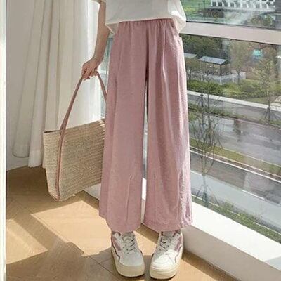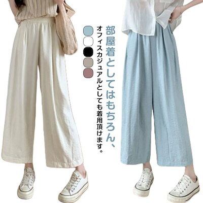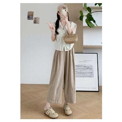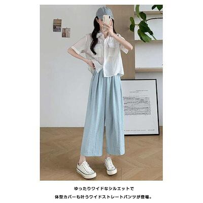 本日限定 2枚購入で150円OFF ワイドパンツ ストレート 九分丈 ウエストゴム 普通丈 レディース ハイウエスト カジュアルパンツ ワイドパンツ 体型カバー 涼しい ゆったり ワイド 新品追加 | koookooo