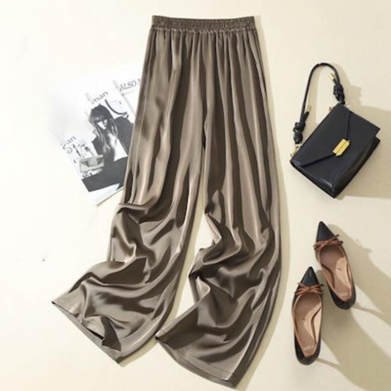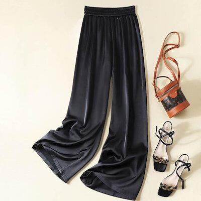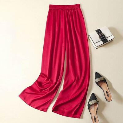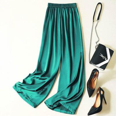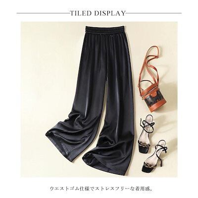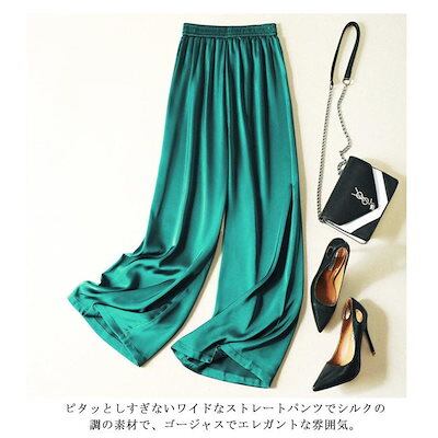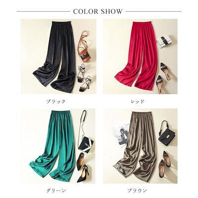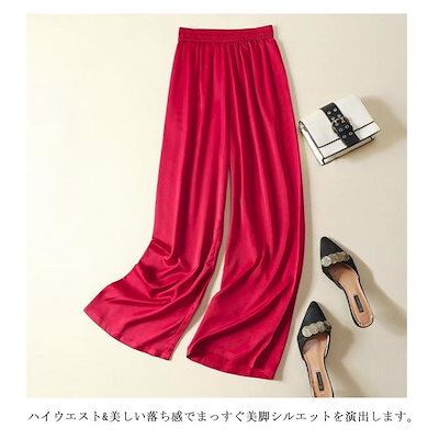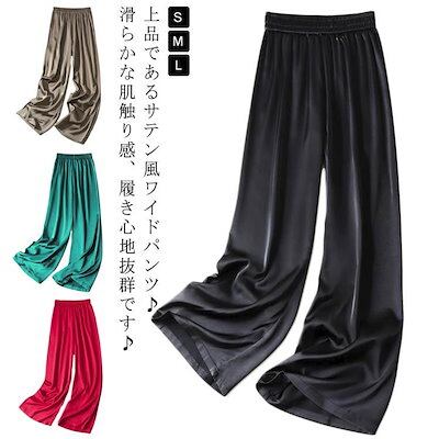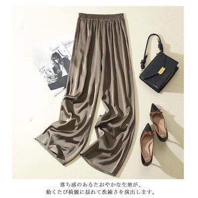 本日限定 2枚購入で150円OFF レディース サマーパンツ サテン調 サマーパンツ ハイウエスト ロングパンツ 光沢感 ボトムズ ワイドパンツ 着痩せ 美脚 通勤 無地 ウエストゴム 新品追加 送料 | koookooo
