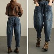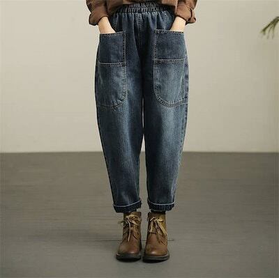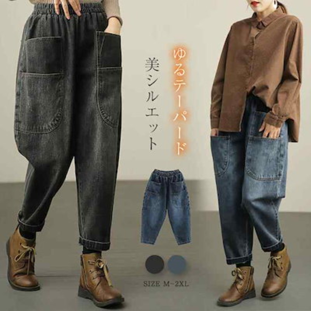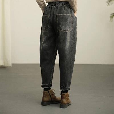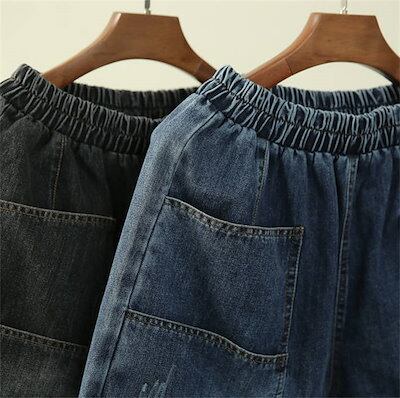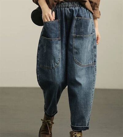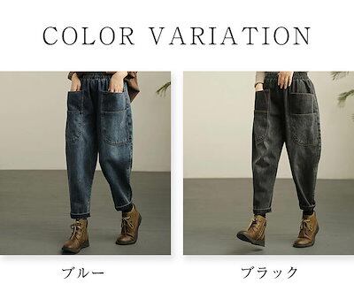 パンツ レディース デニムパンツ ロング ボトムス 春秋 春 夏 秋 デニム ポケット オリジナル ロング丈 9分丈 サーカスパンツ ハイウエスト 裾ロールアップ 着回し リラックス 高見え 細見え | koookooo