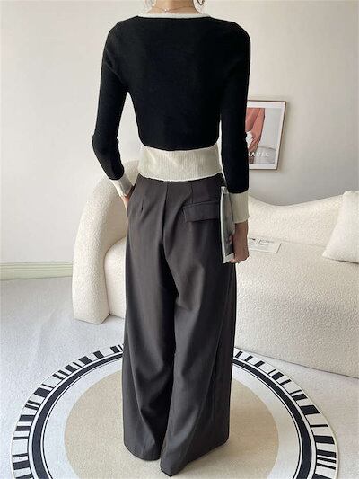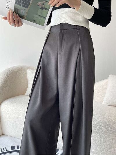パンツ ワイドパンツ タックパンツ レディース 春 夏 秋 冬 ボトムス タック フレア ワイド ロング スーツパンツ ロングパンツ ガチョウパンツ ハイウエスト ポケット付き ゆったり シンプル 洗 | koookooo