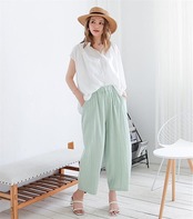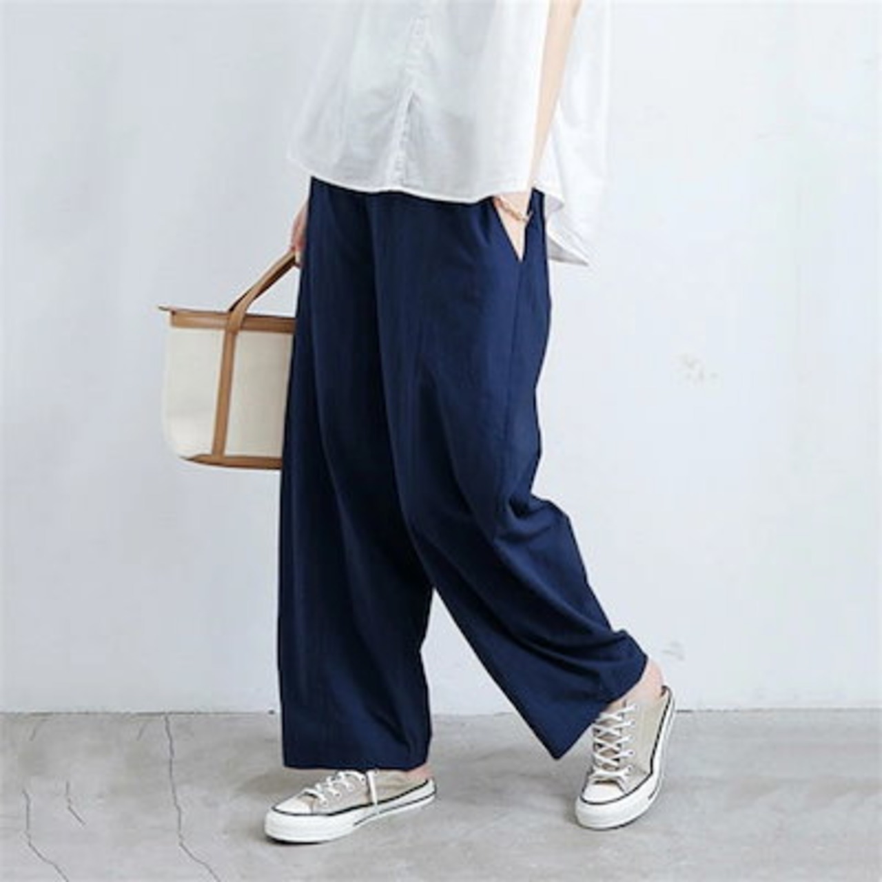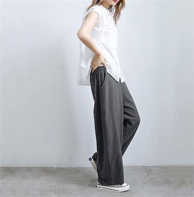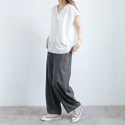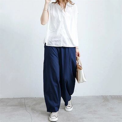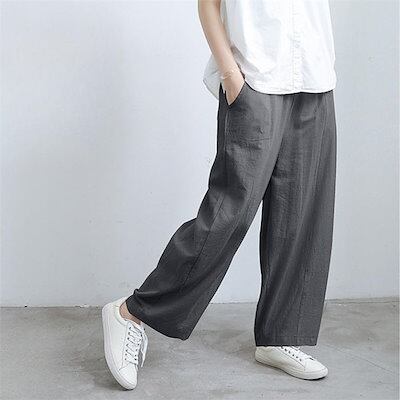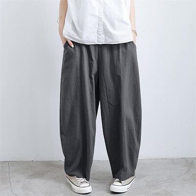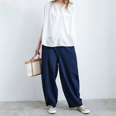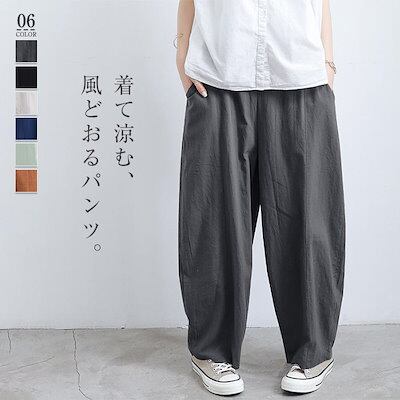 綿麻 ワイドパンツ レディース ロング バルーンパンツ 夏 涼しい パンツ コットンリネン ロングパンツ イージーパンツ きれいめ ハイウエスト ウエストゴム ボトムス ボトム 綿麻パンツ ルームパン | koookooo