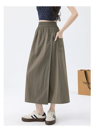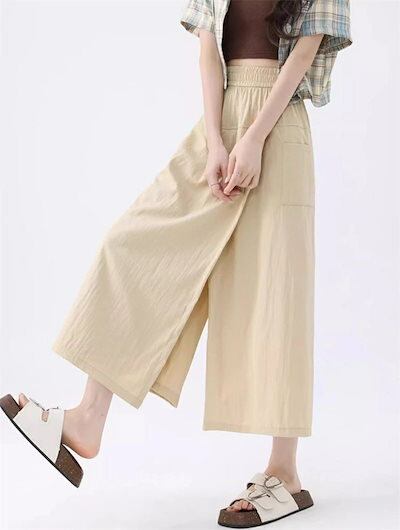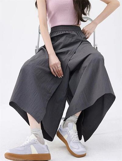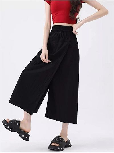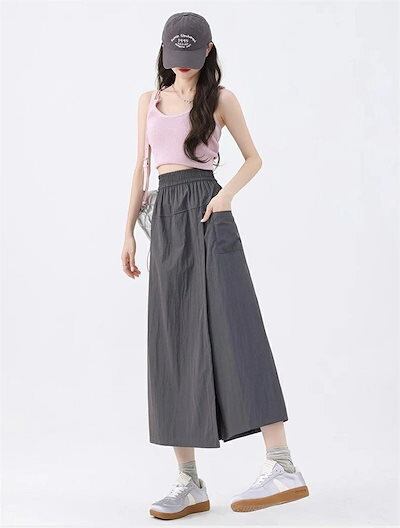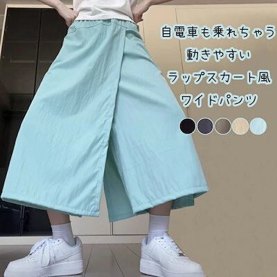 パンツ 巻き ロング アシメ レディース ボトムス ボトム 巻きスカート風 ワイドパンツ ガウチョパンツ スカートパンツ ウエストゴム ワイド 無地 長い ハイウエスト ラップ ラップパンツ ズボン | koookooo