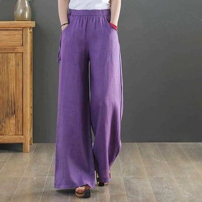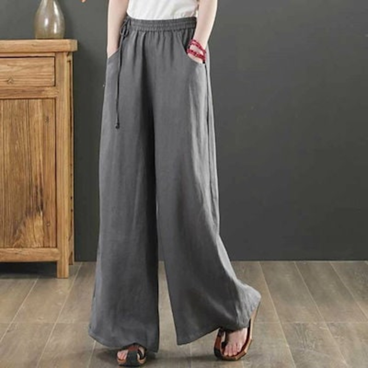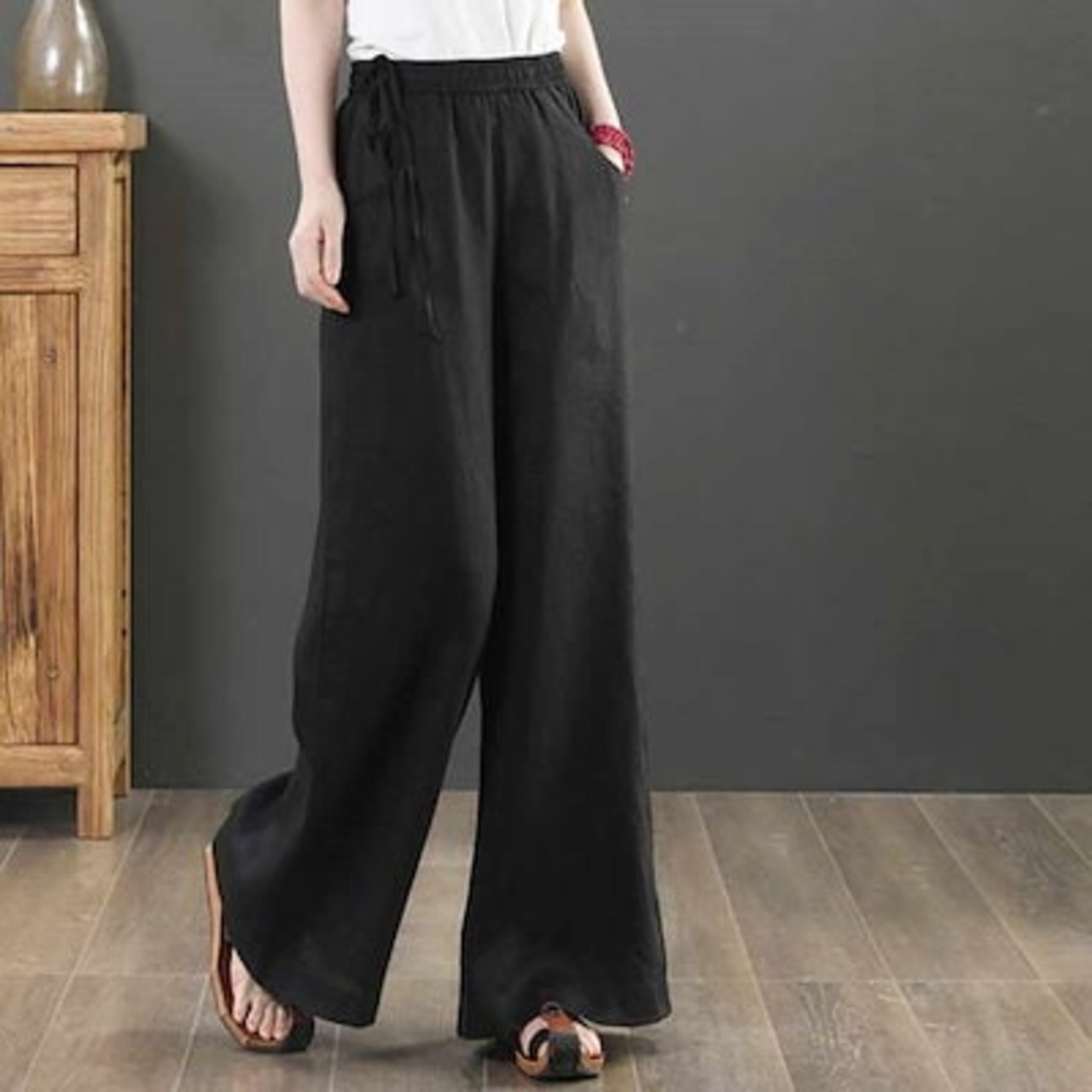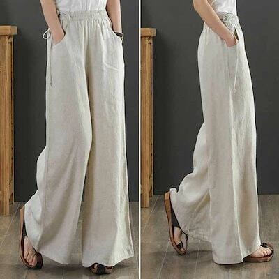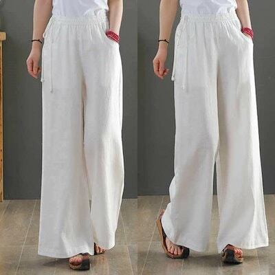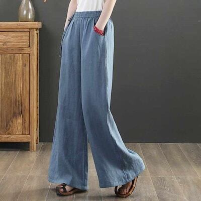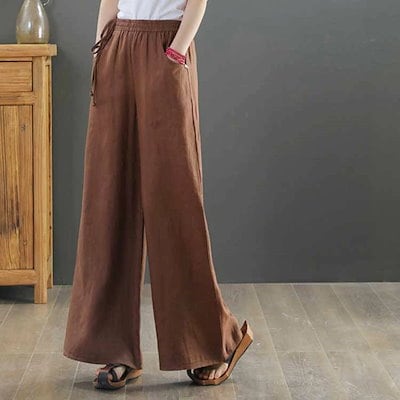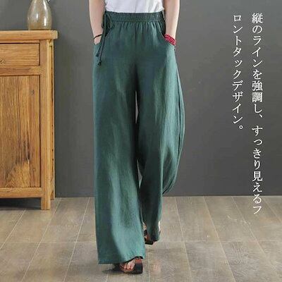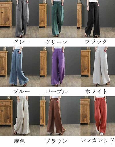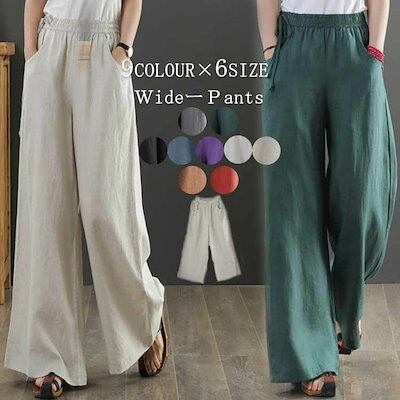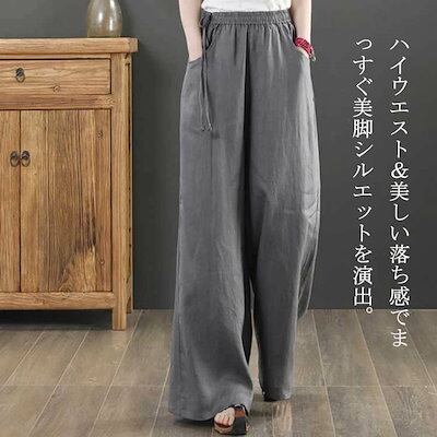 ワイドパンツ リネン ロング 夏 フレアワイドパンツ リネンパンツ 麻 ボトムス レディース 綿麻 夏 ガウチョパンツ 大きいサイズ ロングパンツ ワイド 流行 ハイウエスト 無地 ウエストゴム 薄 | koookooo