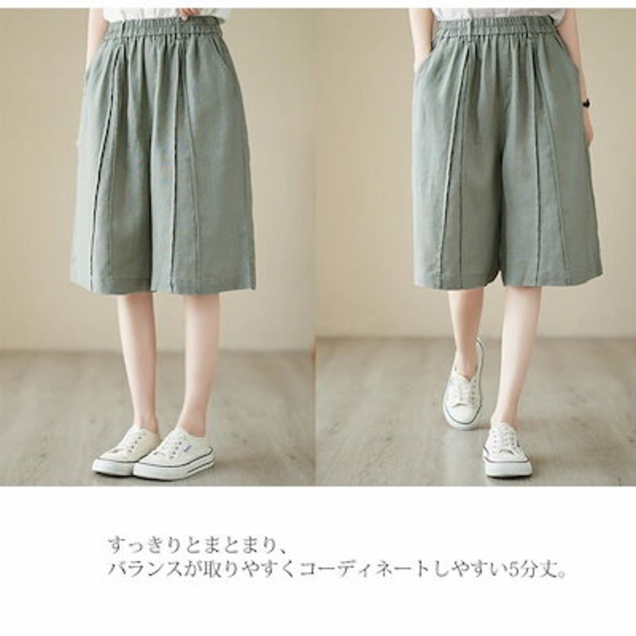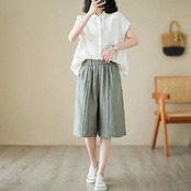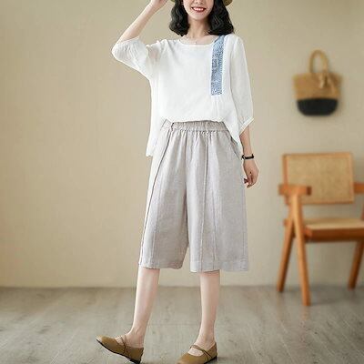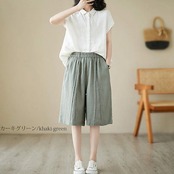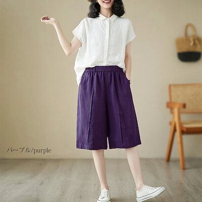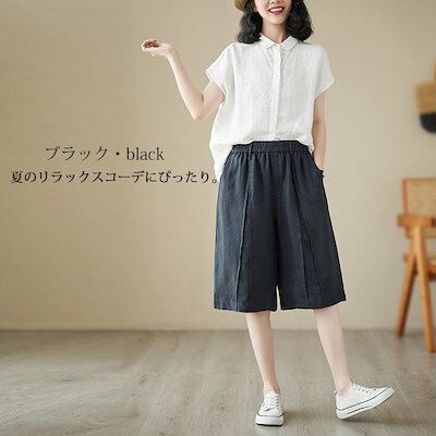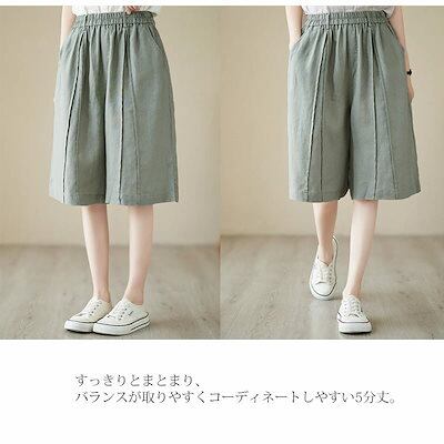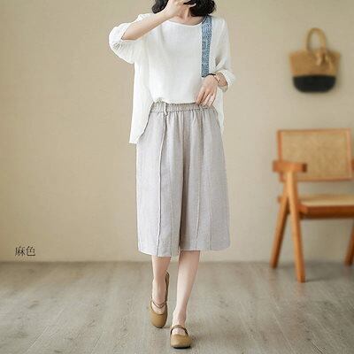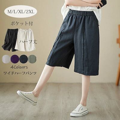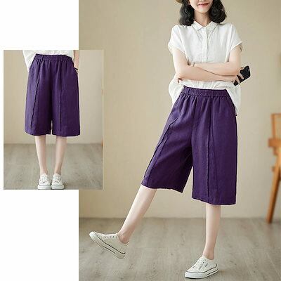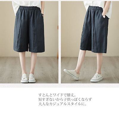 ハーフパンツ レディース 夏 パンツ ボトムス ワイドパンツ 綿 麻 ハイウエスト ウエストゴム クロップドパンツ 大きいサイズ ストレートパンツ ひざ丈 膝下 ズボン 無地 パンツ リネン 麻 涼 | koookooo