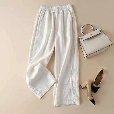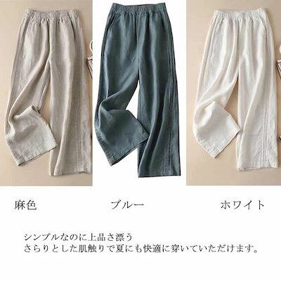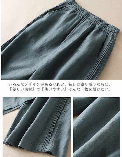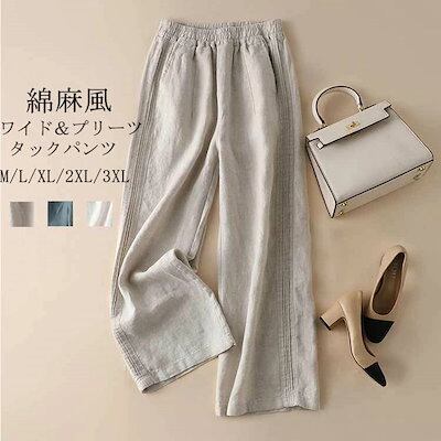 ガウチョパンツ スカーチョ 綿麻 ワイドパンツ リネンパンツ 麻 ロングパンツ タック入り ボトムス レディース ロング パンツ ハイウエスト リネン ズボン 大きいサイズ ロングパンツ ゆったり 体 | koookooo