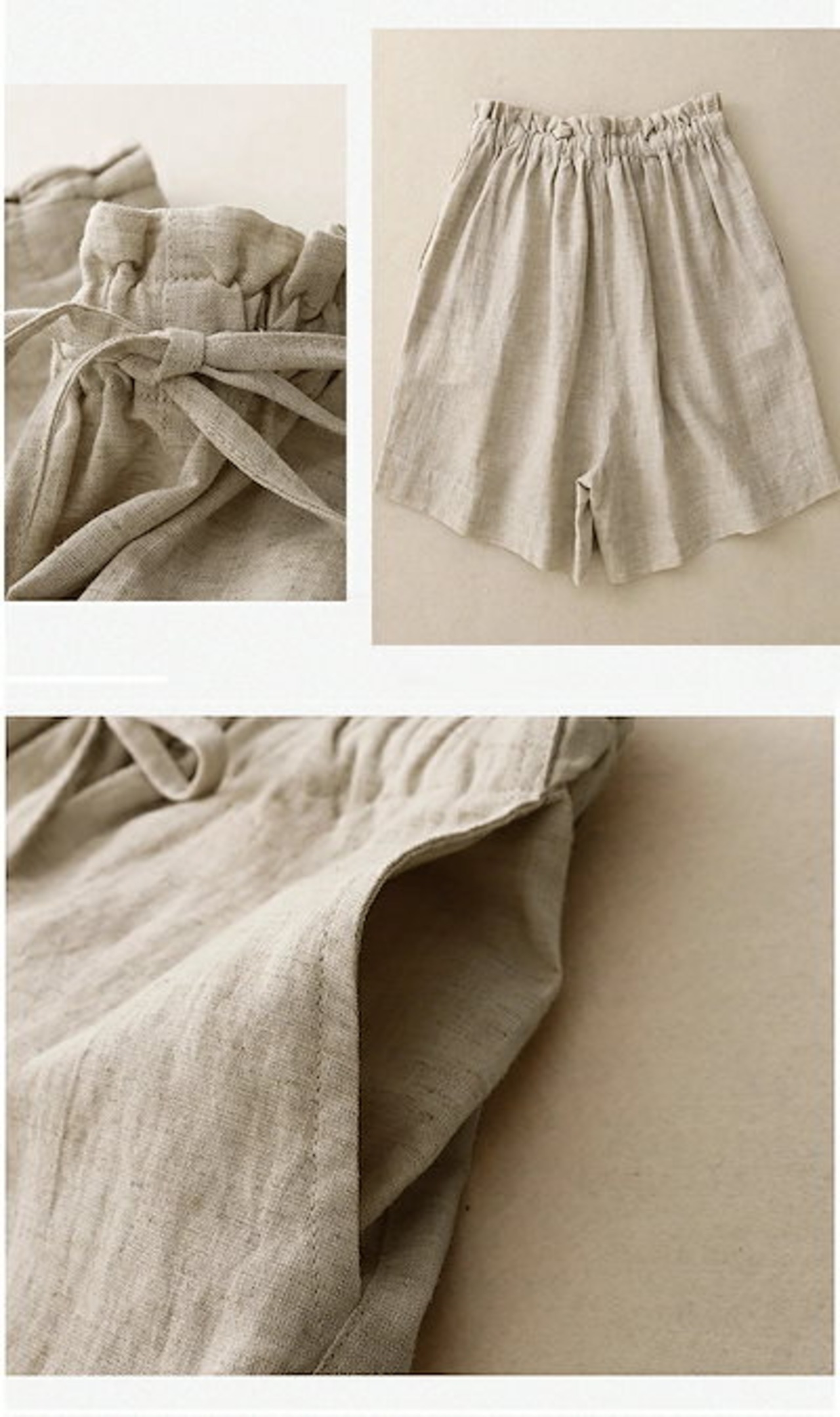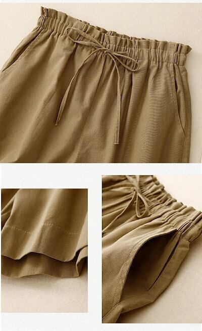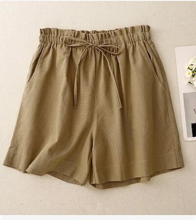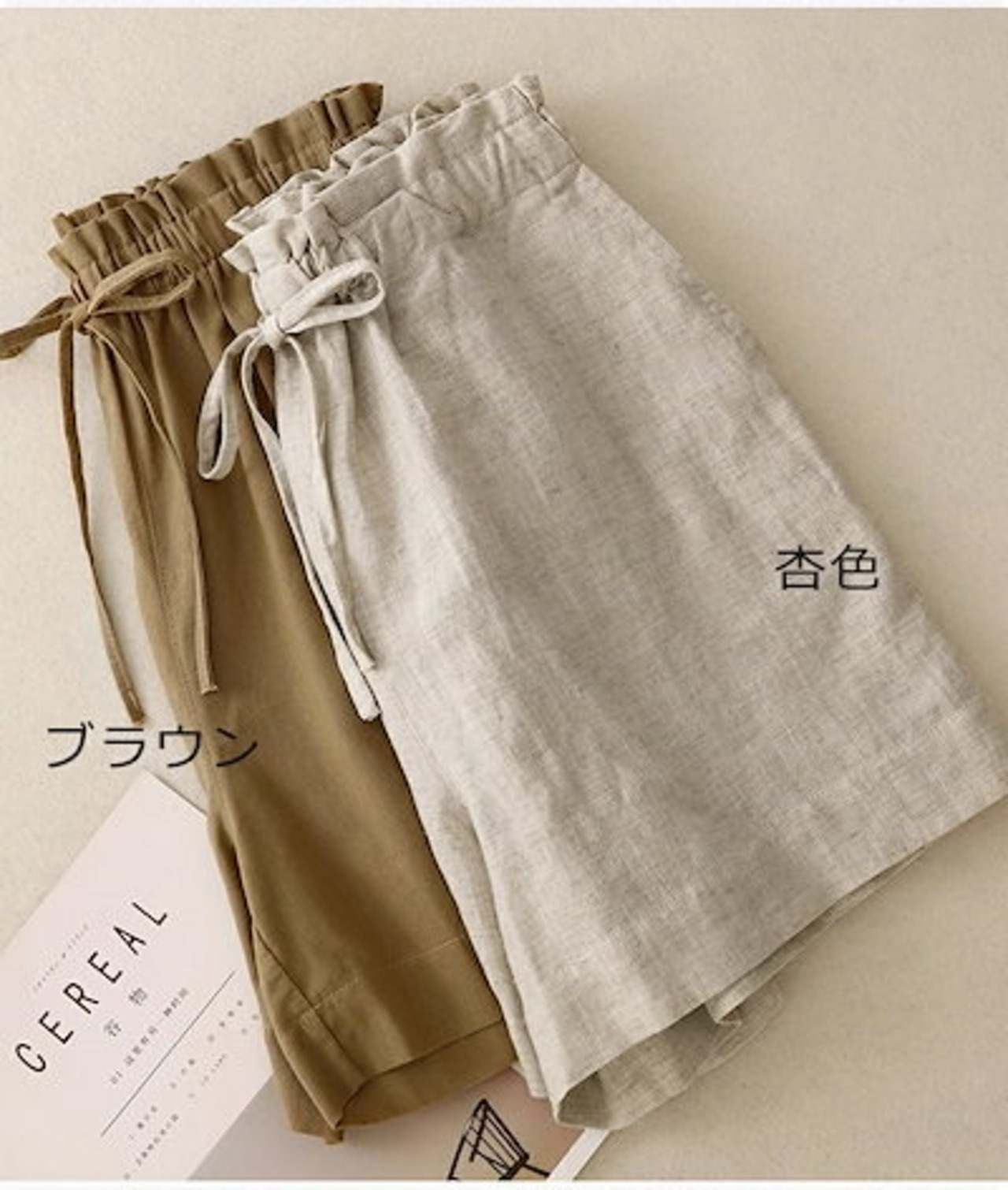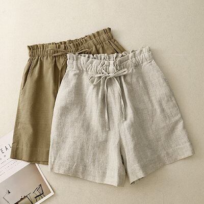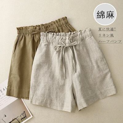 パンツ 綿麻風 ショートパンツ レディース 夏 ハーフパンツ パンツ キュロット 五分丈 ボトムス フリル 綿 ガウチョパンツ 大きいサイズ ズボン ワイド aライン ゴム ハイウエスト 無地 リネン | koookooo