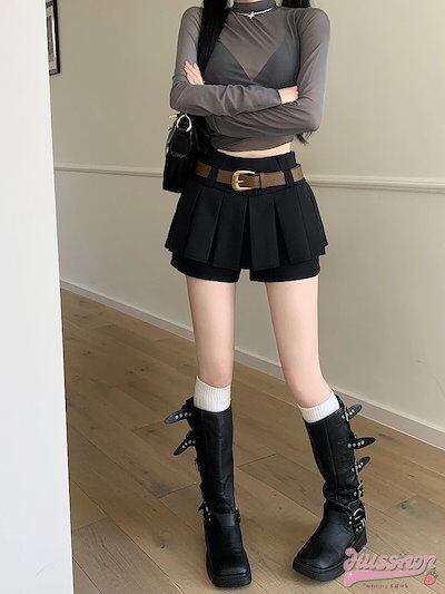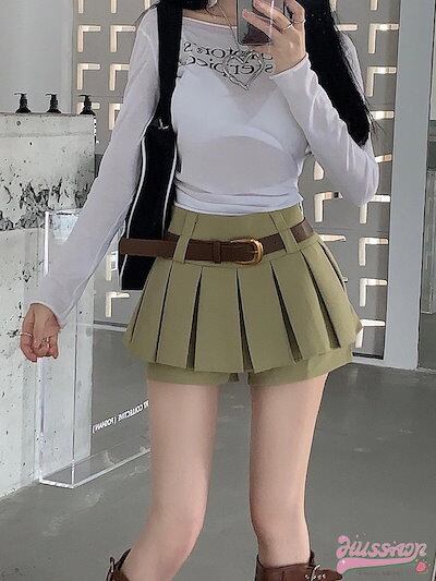 お出かけ レディース 韓国ファッション 秋 おしゃれ かわいい カジュアル 細見え 美脚効果 脚長効果 ハイウエスト ベルトループ 台形 Aライン プリーツ ショート丈 キュロット パンツ | koookooo