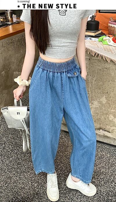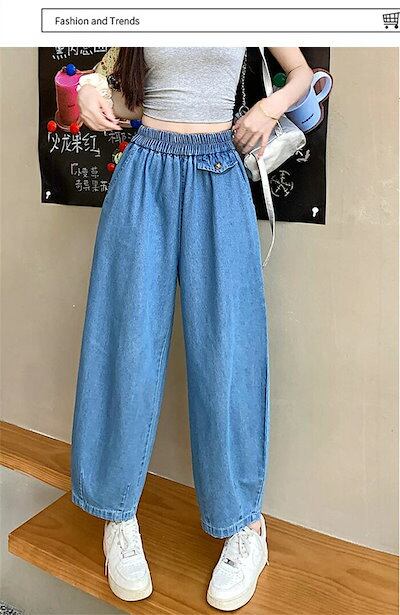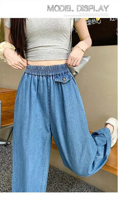 バルーンパンツ レディース デニムパンツ ロング丈 デニム ロングパンツ ハロンパンツ デニムパンツ ワイドパンツ ウェストゴム パンツ ゆったり 体型カバー バギー ボトムス ワイドルーズ ポケット | koookooo