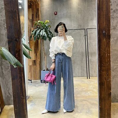 ワイドパンツ デニムパンツ レディース デニムワイドパンツ ジーンズ ジーパン ウエストタンク ロング ゆったり バギーパンツ ボトムス ワイドデニムパンツ 春秋 カジュアル ズボン ロング丈 大きい | koookooo