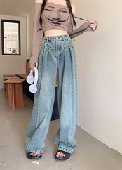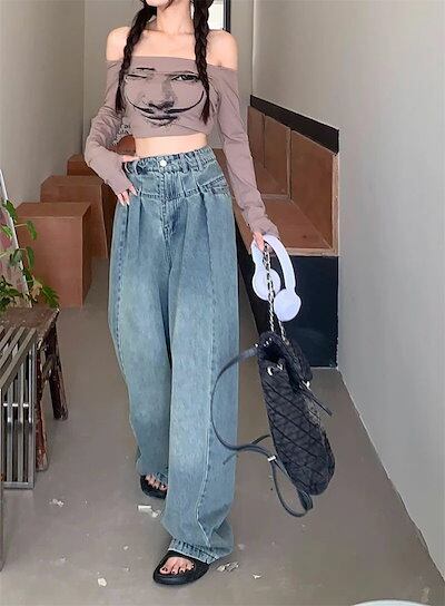 デニムワイドパンツ レディース デニム ワイド パンツ タックパンツ ロング丈 ジーンズ デニムパンツ ボトムス ハイウエスト リラックス ジーパン バギーパンツ ゆったり おしゃれ 体型カバー 着痩 | koookooo