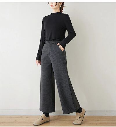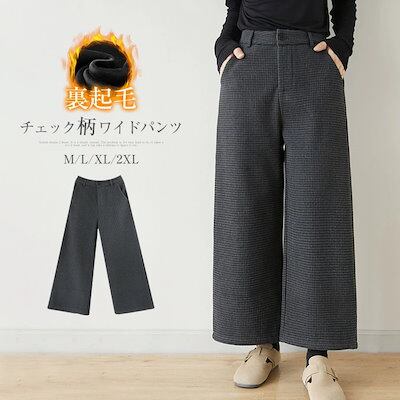パンツ 秋冬 パンツ レディース チェック ワイドパンツ 裏起毛 パンツ ゆったり 厚手 パンツ ウエストゴム 美脚 リラックス 防寒 パンツ 暖い カジュアル ボトムス 体型カバー バギーパンツ イ | koookooo