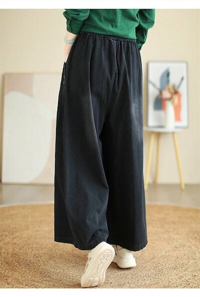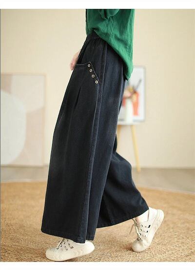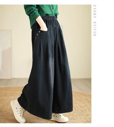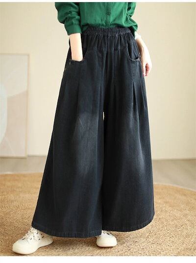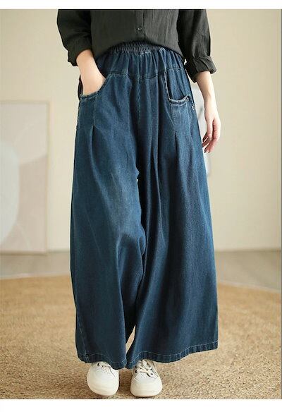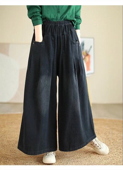デニム ワイドパンツ デニムパンツ レディース ガウチョパンツ ジーンズ ゆったり ボトムス ジーパン 大きいサイズ バギーパンツ イージー 柔らか デニム 森ガール ズボン ウエストゴム 体型カバー | koookooo