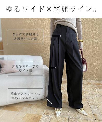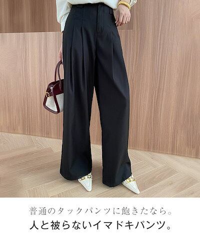 パンツ タックパンツ レディース タック ワイドパンツ ワイド ロング 大きいサイズ ボトム 体型カバー ボトムス ずぼん ズボン ハイウエスト ガウチョ バギー バギーパンツ オフィス スラックス | koookooo