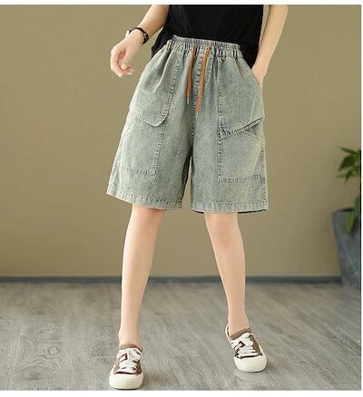 デニム ハーフパンツ ショートパンツ デニムパンツ 夏 レディース ワイドパンツ きれいめ ガウチョパンツ スカーチョ バギーパンツ 大きいサイズ カジュアル 切替え 無地 ウエストゴム 大人 ボトム | koookooo