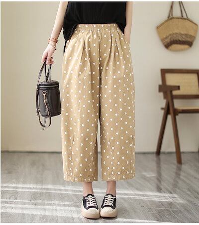 ドット柄 パンツ ボトムス バギーパンツ レディース 春 夏 スラックス 大きいサイズ ワイド テーパードパンツ ハイライズパンツ 可愛い ロング 半端丈 ボトムス パンツ ビッグシルエットバギーパン | koookooo