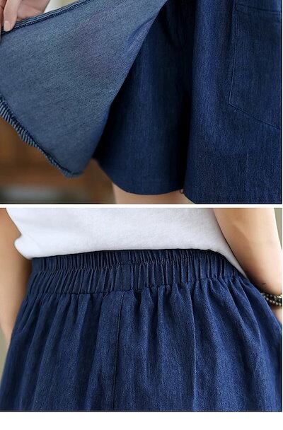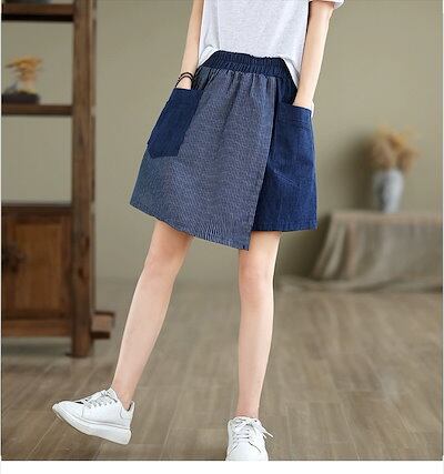 デニムハーフパンツ デニムスカート ショートパンツ ボトムス ストライプ 大人可愛い パンツ 夏 レディース ワイドパンツ きれいめ ガウチョパンツ スカーチョ バギーパンツ 大きいサイズ テーパード | koookooo