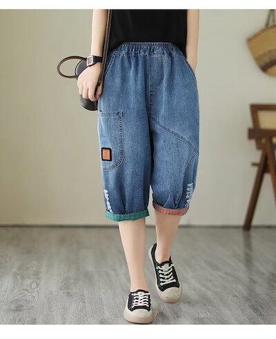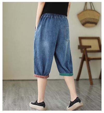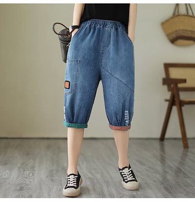 レディース デニムパンツ ハーフパンツ ショートパンツ 夏 女の子 キュロット ワイドパンツ きれいめ ガウチョパンツ スカーチョ バギーパンツ 大きいサイズ テーパードパンツ 無地 ウエストゴム 大 | koookooo