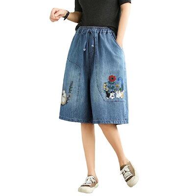 デニムパンツ ハーフパンツ ショートパンツ 新作 夏 レディース キュロット ワイドパンツ きれいめ ガウチョパンツ スカーチョ バギーパンツ 大きいサイズ テーパードパンツ 無地 ウエストゴム 大人 | koookooo