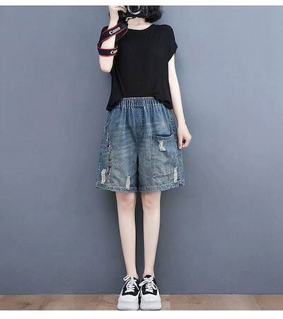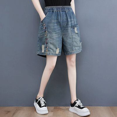 デニムパンツ 夏 ハーフパンツ レディース ショートパンツ キュロット ワイドパンツ きれいめ ガウチョパンツ スカーチョ バギーパンツ 大きいサイズ テーパードパンツ 無地 ウエストゴム 大人気 ボ | koookooo