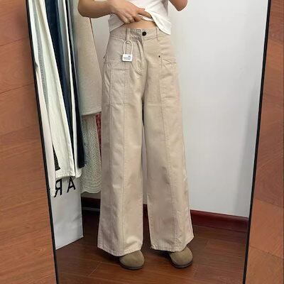 アメリカのレトロな工装高腰広脚ジーンズ女性の新しいギャル個性街頭風ゆるいストレートパンツ