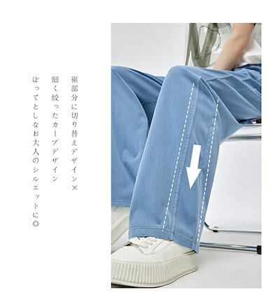 カーブパンツ デニム パンツ ワイド レディース デニムパンツ きれいめ 低身長 カーブ バルーンパンツ 夏 春 ワイドパンツ ジーンズ ウェストゴム さらてろ テンセルデニム ロングパンツ カジュア | koookooo