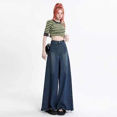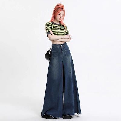 レディース 流行り おしゃれ ゆったり スキニーパンツ スラックスパンツ デニムパンツ デニム ジーンズ 【2枚購入で レトロ ワイドパンツ 2oo円OFF!】2024新作 ハイウエスト ズボン | koookooo