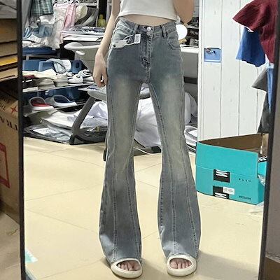 2024新作ズボン レディース 脚長効果 美脚効果 細見え ワイドパンツ デニム ズボン レディース ロングズボン モップパンツ デニムボトムス デニムパンツ ひんやりボトムス