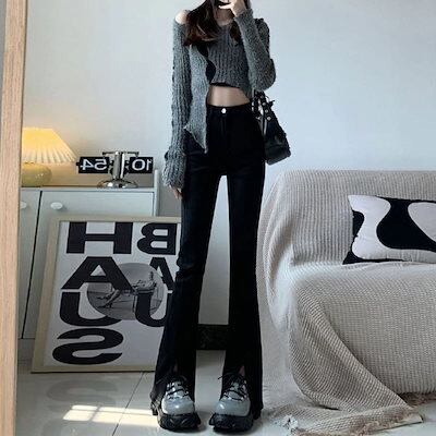 韓国ファッションジーンズ レディース脚長効果 美脚効果 細見え ワイドパンツ デニム ズボン レディース ロングズボン モップパンツ デニムボトムス デニムパンツ ひんやりボトムス | koookooo