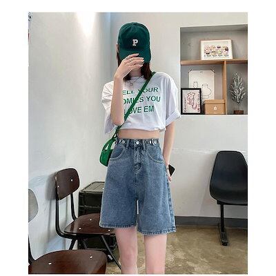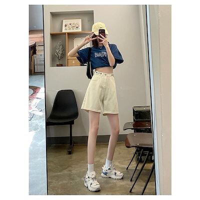 夏の新着商品 デニム ショートパンツ レディース ボトムス ハイウエスト ポケット ロールアップ 五分丈 お洒落 可愛い 無地 カジュアル ファッション 美脚 夏服