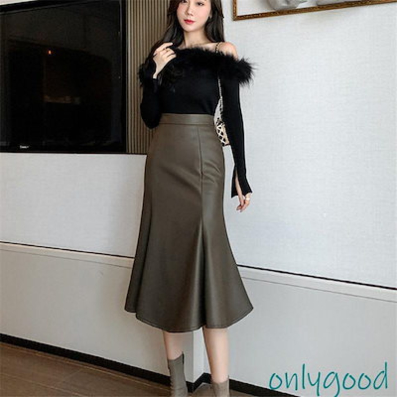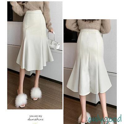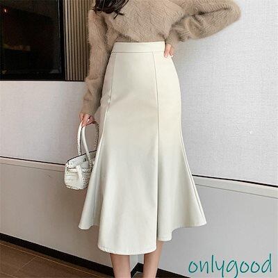 レザースカート レディース ロングスカート ボトムス テールスカート おしゃれ フェイクレザー 革スカート 着痩せ 可愛い 上品 女性らしい 秋冬