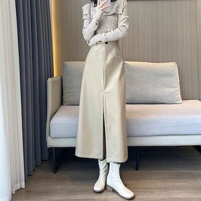 PU皮 スカート 秋新作 レディース ハイウエスト ロングスカート スリミング 着痩せ スリット タイトスカート