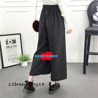 ワイドパンツ ガウチョパンツ レディース ハイウエスト アンクル丈 秋冬 厚手 ウエストゴム スカーチョ ボトムス きれいめ 体型カバー 大きいサイズ