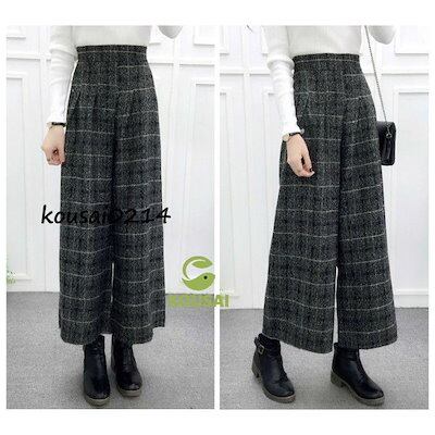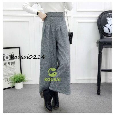 ウエストゴム ウール タッチ タック ワイド パンツ ボトムス ロング カジュアル 上品 レディース ワイドパンツ きれいめ アンクル丈 無地 柄 清楚