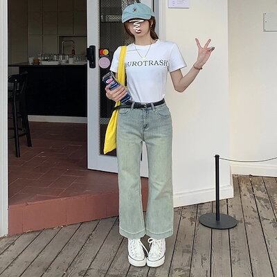 3色 ジーンズ デニムパンツ ロングパンツ gパン ストレッチ 九分丈 アンクルパンツ ハイウエスト 着痩せ ストレート ボトムス レディース 春 秋 冬 カジュアル ファッション | koookooo