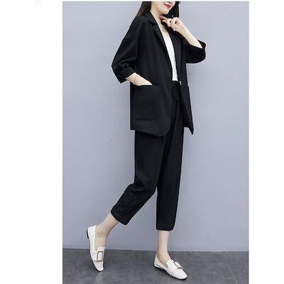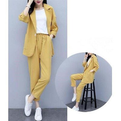 セットアップ レディース 春 秋 スーツジャケット 2点セット カジュアルスーツ おしゃれ テーパードパンツ 九分丈 通勤