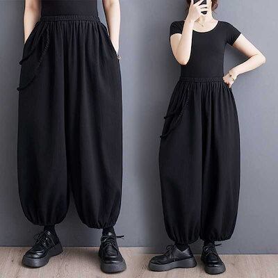 「ファットガール」 2024春夏 ロングパンツ 九分丈 テーパードパンツ ゴム ワイドパンツ 体型カバー 大きいサイズ ゆったり レディース