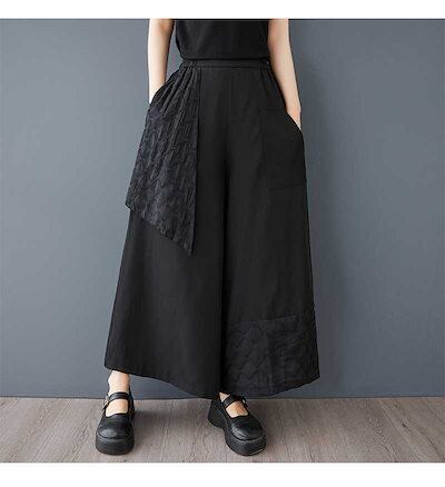 「ファットガール」 キュロットスカート 春夏 レースドッキング 大きいサイズ 体型カバー レディース 九分丈 フレア ワイドパンツ メガ割