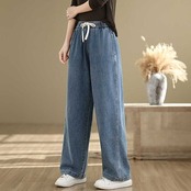 「ファットガール」 2025春 デニムパンツ ジーンズ ゴム ストレート レディース ロングパンツ メガ割