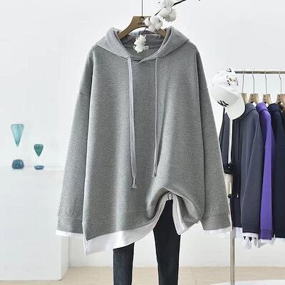 大きいサイズパーカーレディース韓国ファッションゆったり百掛けスウェット秋冬薄い長袖ト