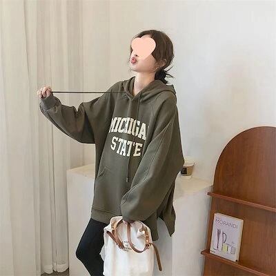 秋トレーナースウェット韓国ファッション大きいサイズゆったりパーカーレディースカジュアル百掛け体型カバー