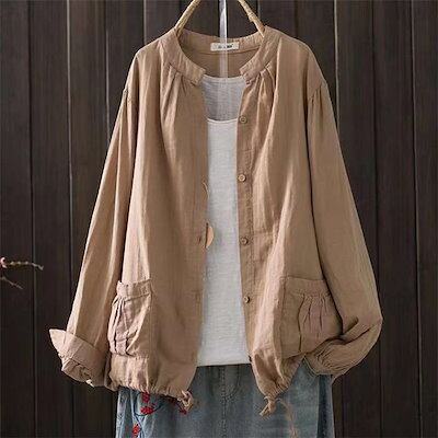 カーディガン レディース シャツ ブラウス ダブルガーゼ 春 夏 秋 長袖 ジャケット アウター シャツ 前開き 無地 フロントボタン トップス ガーゼ コットン カジュアル バンドカラー 綿 コット | koookooo