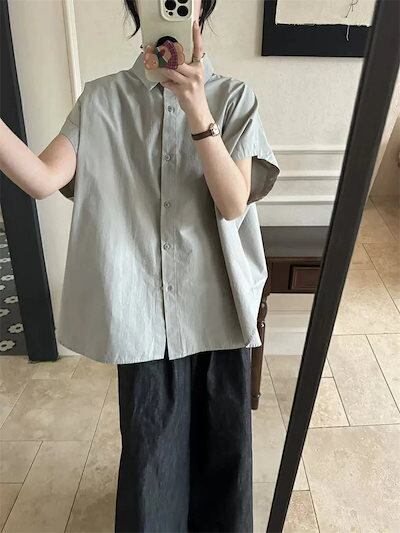 シャツ チュニック レディース シャツブラウス 夏 半袖 ブラウス トップス 半袖ブラウス 大きいサイズ 体型カバー 白シャツ ボタン留め 前開き 折り襟 春 カジュアル 可愛い ホワイト グレー ブ | koookooo