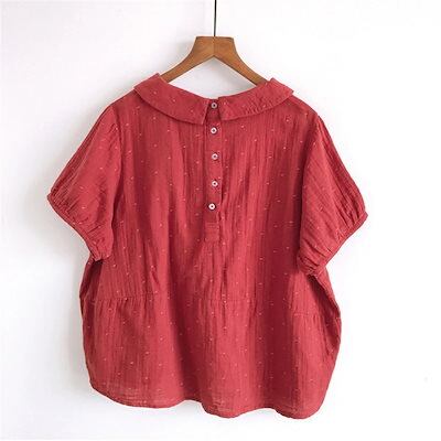 シャツ 綿シャツ レディース 半袖シャツ コットン 可愛い きれいめ 丸襟 トップス ブラウス シャツブラウス プルオーバー ガーゼシャツ ダブルガーゼ 後ろボタン コットンシャツ 半袖ブラウス 丸衿 | koookooo