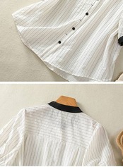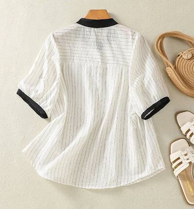 ブラウス シャツ レディース 麻風シャツ 春 トップス シャツブラウス レディースシャツ 夏 ストライプ バイカラー 可愛い 前ボタン シンプル パフ—スリーブ デザイン性 涼しい 20代 30代 4 | koookooo
