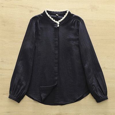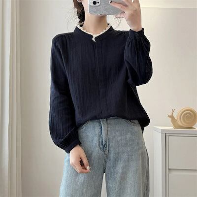 長袖 シャツ レディース 綿 コットン ブラウス 綿シャツ 長袖シャツ 長袖ブラウス 長袖トップス 春 夏 通気性 立ち襟 ボタン留め 前開き チュニック ゆったり シャツブラウス カジュアル きれい | koookooo