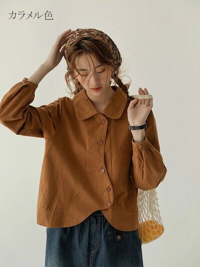 前開き 長袖シャツ 春夏 シャツ レディース 長袖 ブラウス オフィス 長袖ブラウス シャツブラウス ショート丈シャツ 春服 きれいめ コーデ 不規則 ショート丈 トップス 折襟 無地 ボタン 袖ギャ
