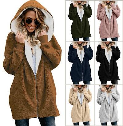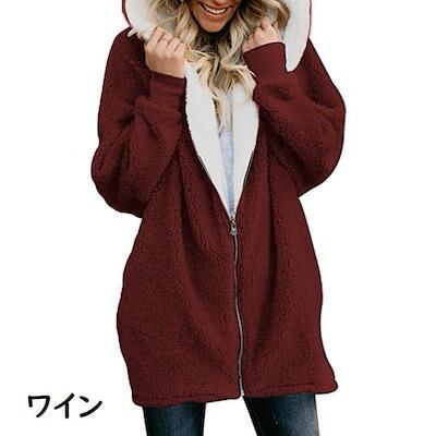 パーカー 長袖 ジップアップ 裏起毛 ボア フード タックドカフス レディース アウター 冬 防寒 寒さ対策 無地 シンプル カジュアル 暖かい S M L XL 2XL 3XL 4XL 5XL | koookooo