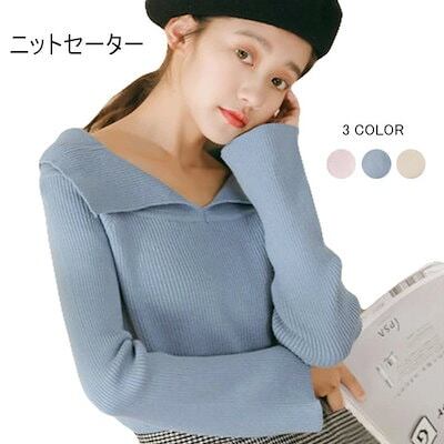 ニットセーター レディース セーター リブニット ニットトップス Vネック 折り襟 長袖 無地ニット インナーニット お洒落 シンプル カジュアル キレイめ トップス プルオーバー 秋新作 | koookooo